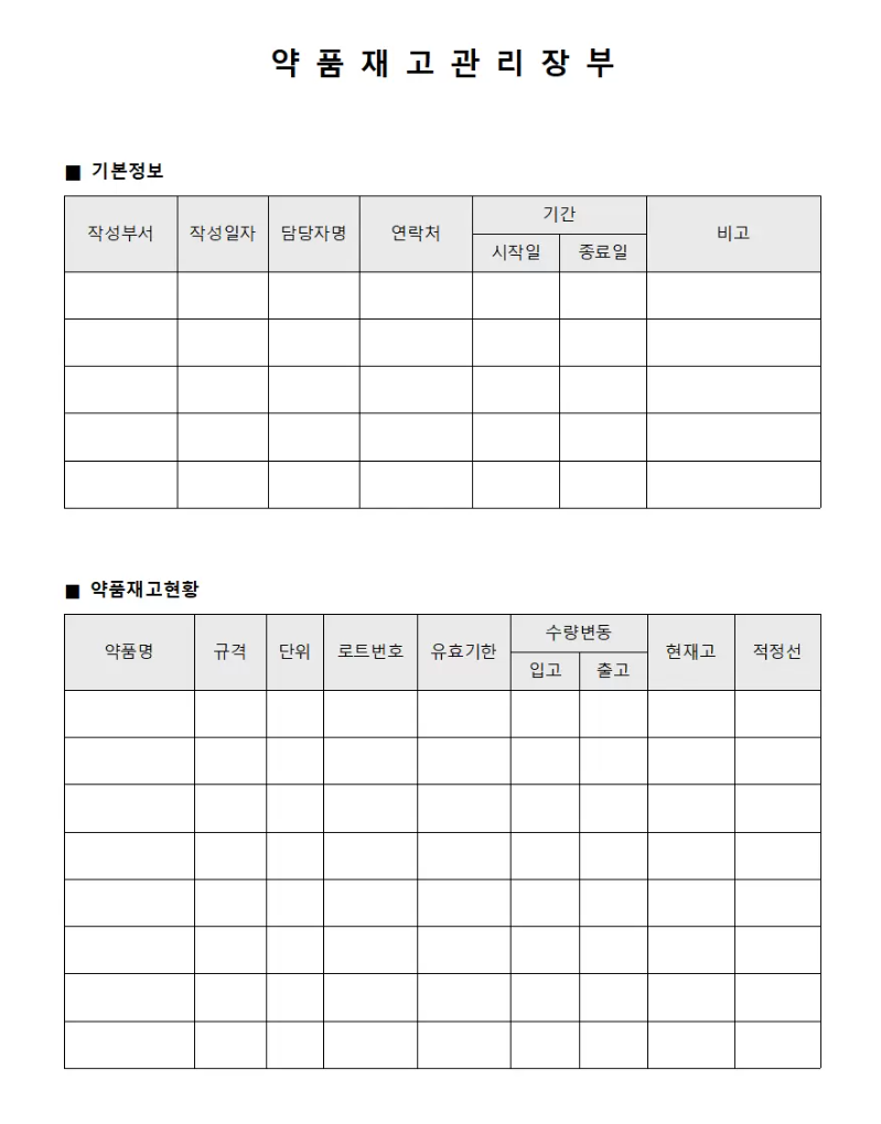 약품명 로트번호 규격 단위 입고일 출고일 수량 유효기한 보관조건 제조사 담당자 등 모든 항목을 명확하게 기재하고 특히 유효기한이나 보관온도같은 중요 정보도 함께 기록하여 약품의 전체 이력을 한눈에 파악할 수 있도록 작성해야 합니다.